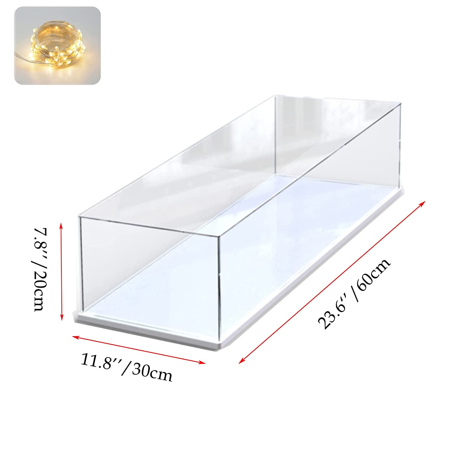 ELEpure Clear Acrylic Display Case Large Countertop Box Cube Assemble Organizer Box Protection Showcase for Lego Figures Collectibles White (23.6X11.8X7.9inch; 60x30x20cm)