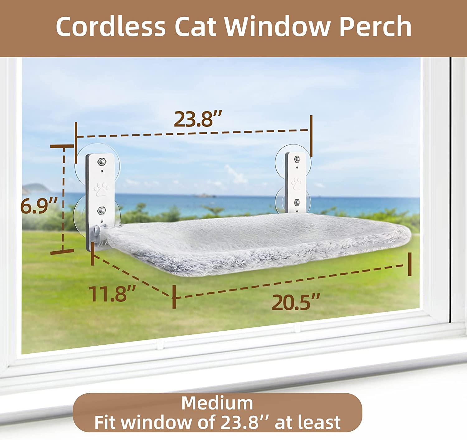 AMOSIJOY Cordless Cat Window Perch, Cat Hammock for Window with 4 Strong Suction Cups, Solid Metal Frame and Soft Cover, Foldable Cat Beds for Indoor Cats