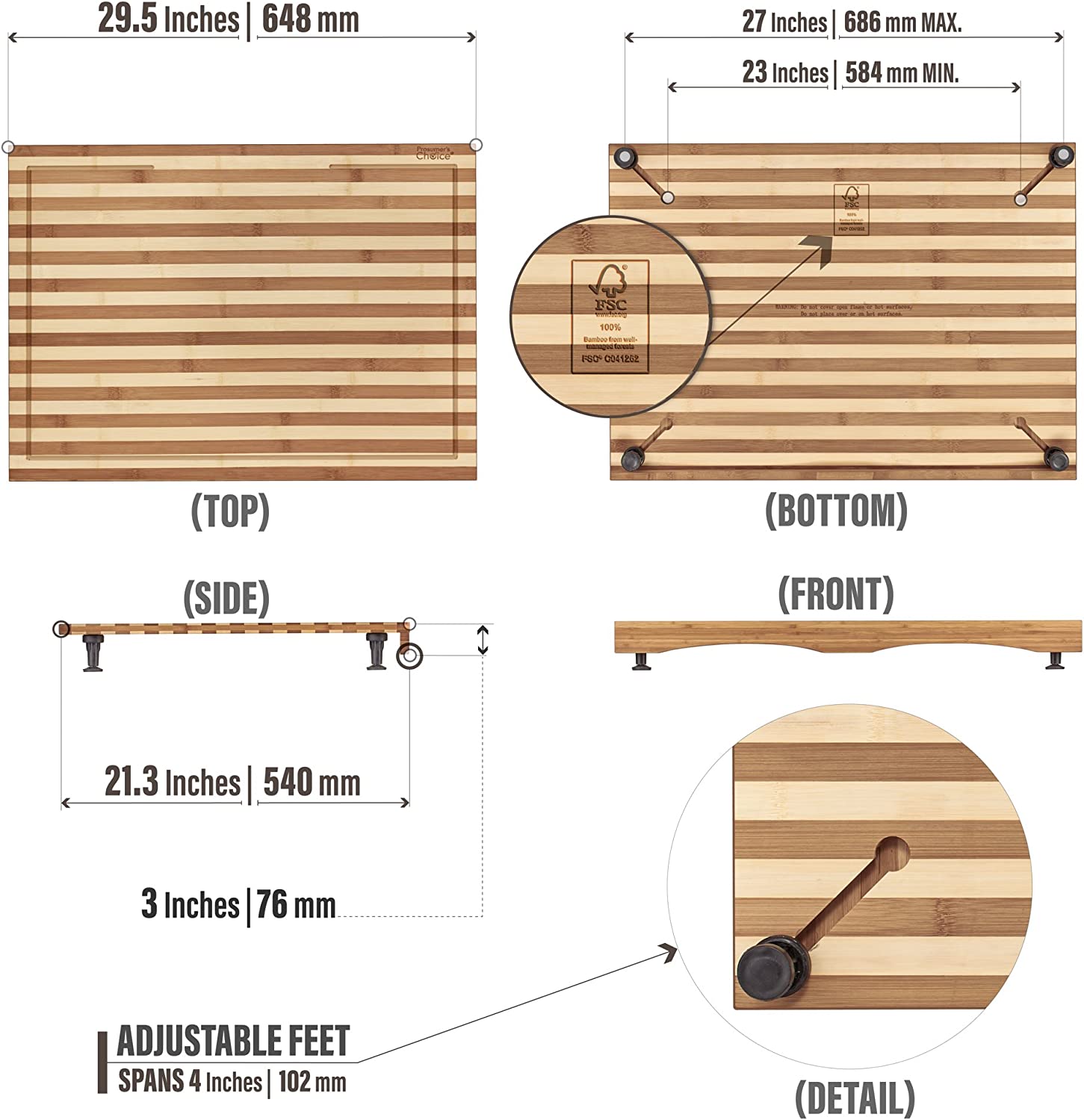 Prosumer's Choice Stovetop Cover Bamboo Cutting Board | Premium, Sustainable, Expands Kitchen Space, Easy to Clean - with Adjustable Legs and Juice Grooves - Large