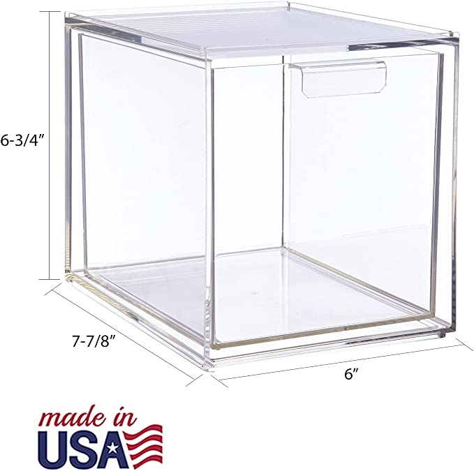 STORi Audrey Stackable Clear Plastic Organizer Drawers | 2 Piece Set | 6.75-Inches Tall | Organize Cosmetics and Beauty Supplies on a Vanity | Made in USA