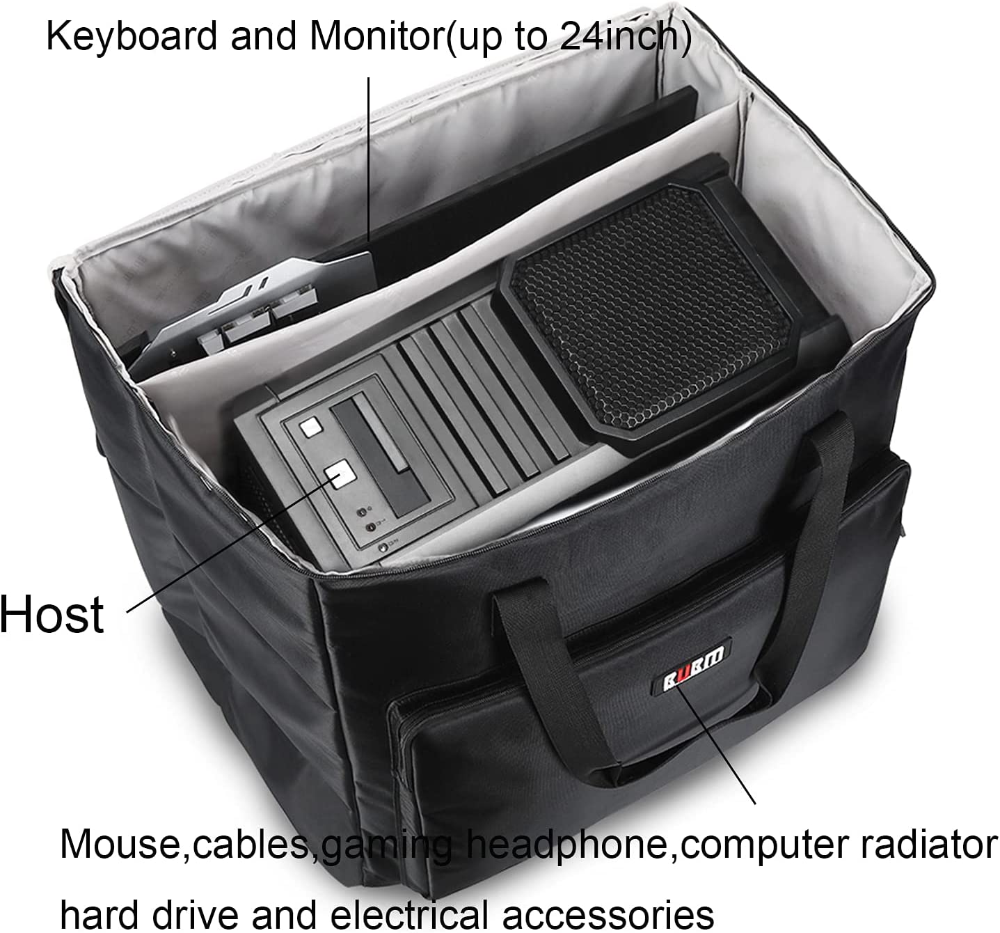 BUBM Desktop Computer Carrying Case,Travel Bag for Tower PC Chassis, Host, Monitor, Keyboard, Cable, Mouse and Accessories 27inch Host Monitoer Keyboard