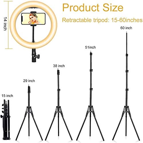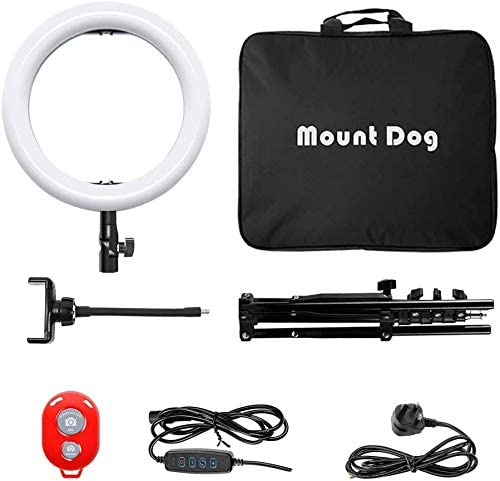MountDog LED Ring Light 14 inch Dimmable Selfie Ring with Tripod Stand, Flexible Phone Holder, Bluetooth Remote Control and Carry Bag for Live Stream Makeup Portrait YouTube Video Shooting TikTok