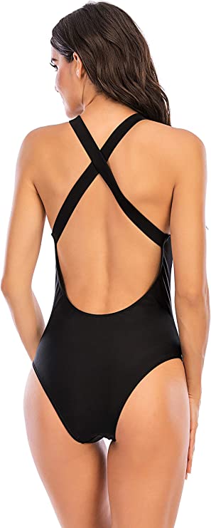 Upopby Womens One Piece Athletic Swimsuit Padded Crisscross Sports Training Racerback Swimwear Plus Size Slimming Bathing Suit Black Size 12